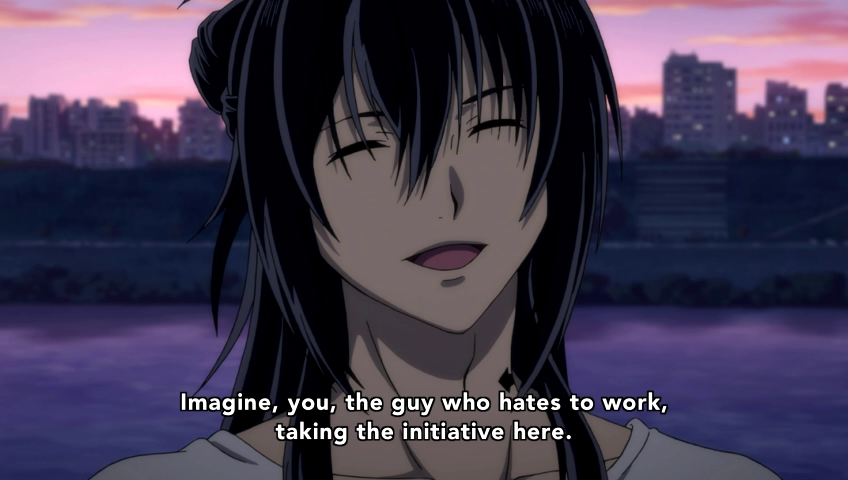As for the characters, there isn’t much to go on here as, at least, half of the Code:Breakers don’t get any development at all while the other half do in some form or fashion. Obviously the largest development goes to both Ogami and Sakura as the two of them, and their personality and morals, heavily affect the other person. This makes for a rather solid foundation for their relationship as there are some little moments where people may go “Awwww he/she likes her/him”. But, for Ogami, Sakura isn’t the only influence on him as Hitomi has a heavy impact as well. Throughout the series, we don’t know much about Hitomi aside from he’s a rouge Code:Breaker, however, in the later third of the series, we do get to learn more about him and what he has been through in order to solidify that influence on, not only Ogami but with, all the Code:Breakers. Hitomi’s story is, really, one of the better ones because we see the world through his eyes and what he experiences in order to change sides. The only other person that we get anything from is Toki. This is because of his family, and it does have it’s rather strong effect on him. Otherwise, our remaining three Code:Breakers, Heike, Yuki, and Hachioji, don’t offer all that much aside from assisting in moving the plot forward. Again, it’s difficult to talk about characters when the writing, in general, doesn’t give you all that much. The characters that do develop do so rather nicely and as naturally as you would expect from a 12 episode series, but since it’s obvious that there’s more to the story it would have been nice if this series fell under the 24-26 episode range instead. This would have made for more opportunities to develop the characters further.